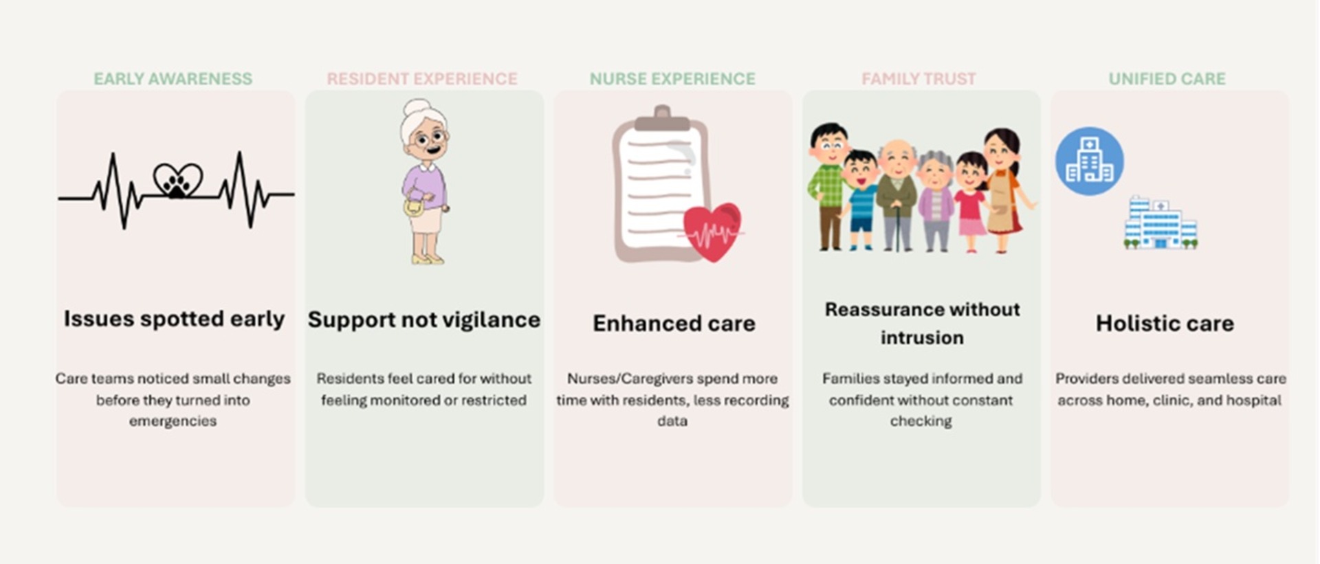 Most existing solutions focused on just one layer: alarms, wearables, or clinical systems. What was missing was a connected care layer that worked quietly in the background and adapted to each resident’s needs.