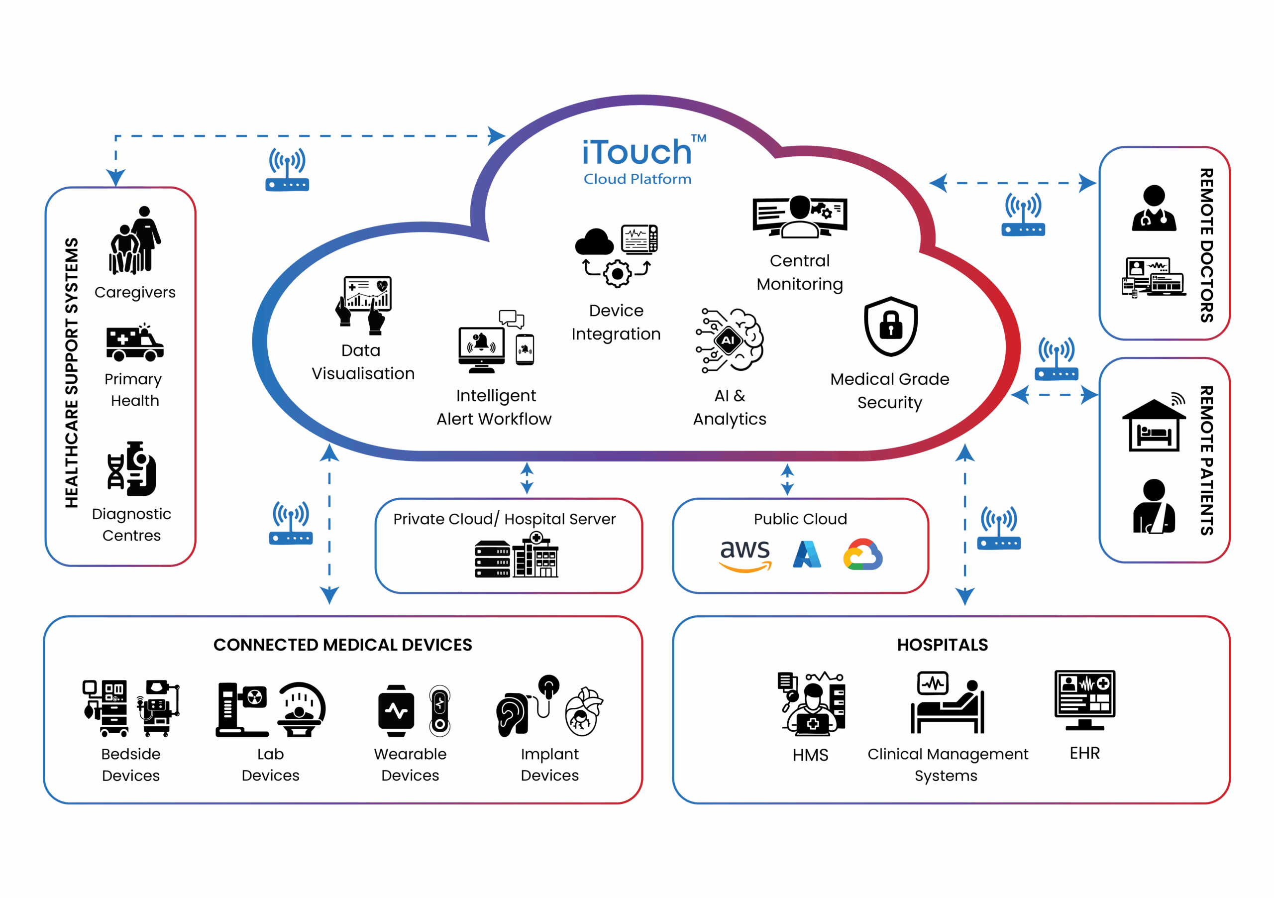 • Seamless integration with multiple device protocols and HMS/EHR systems